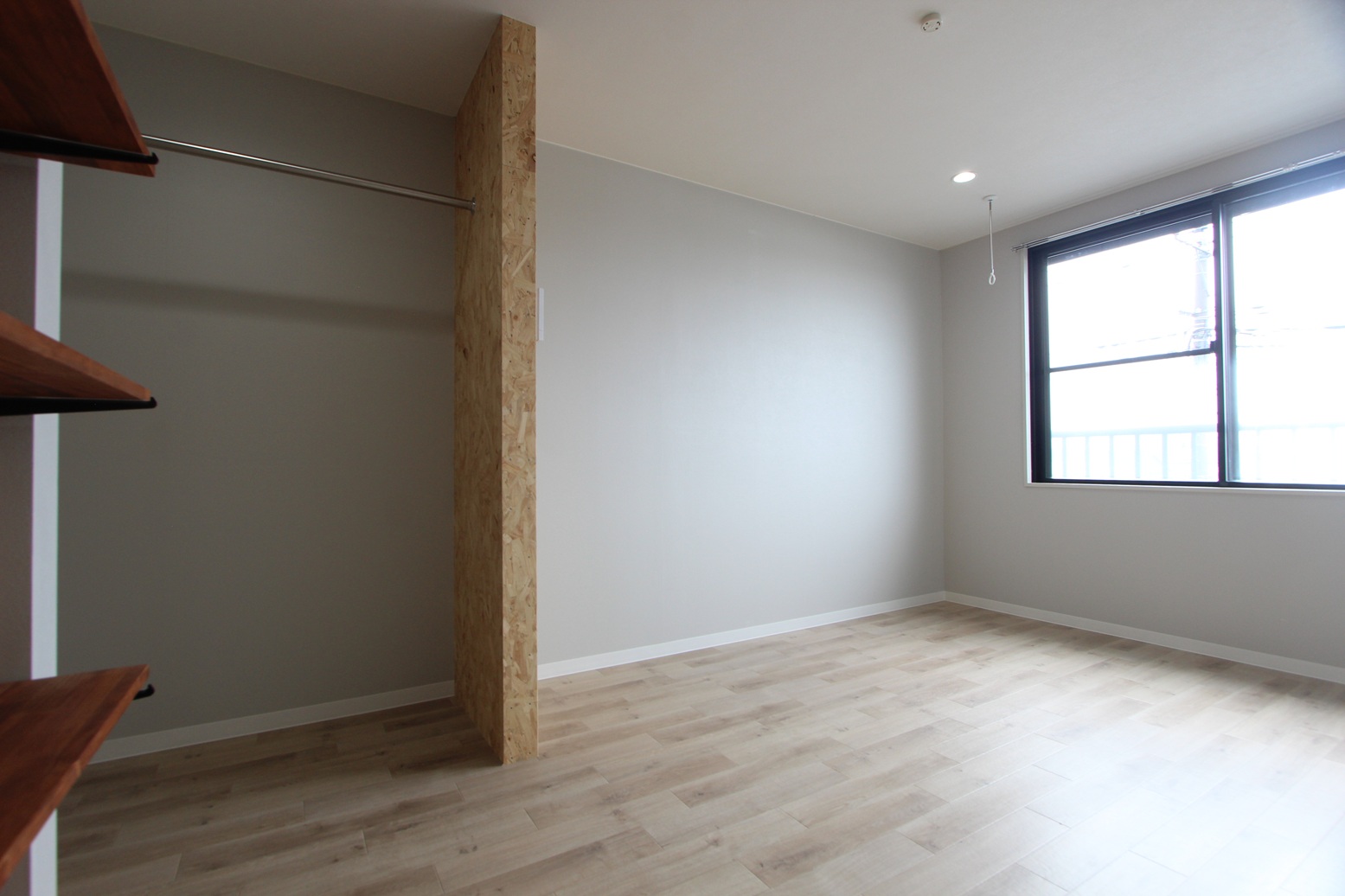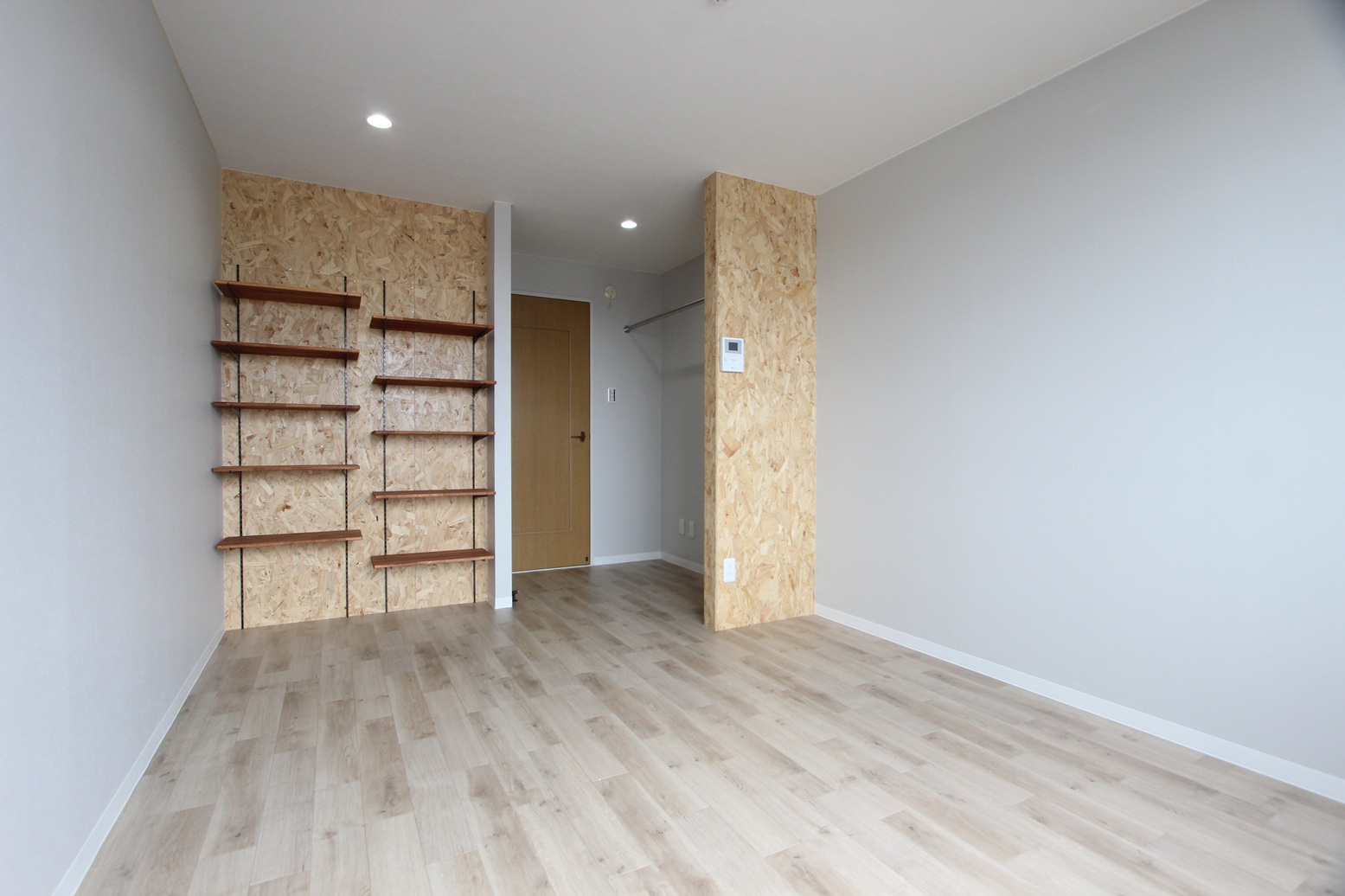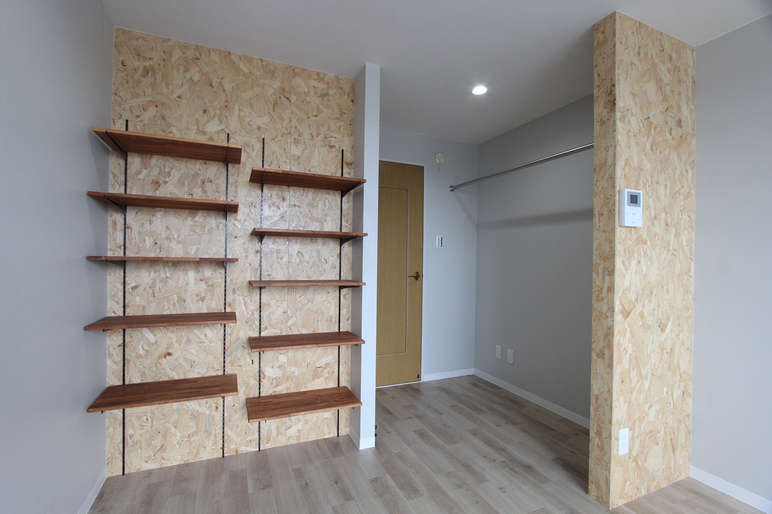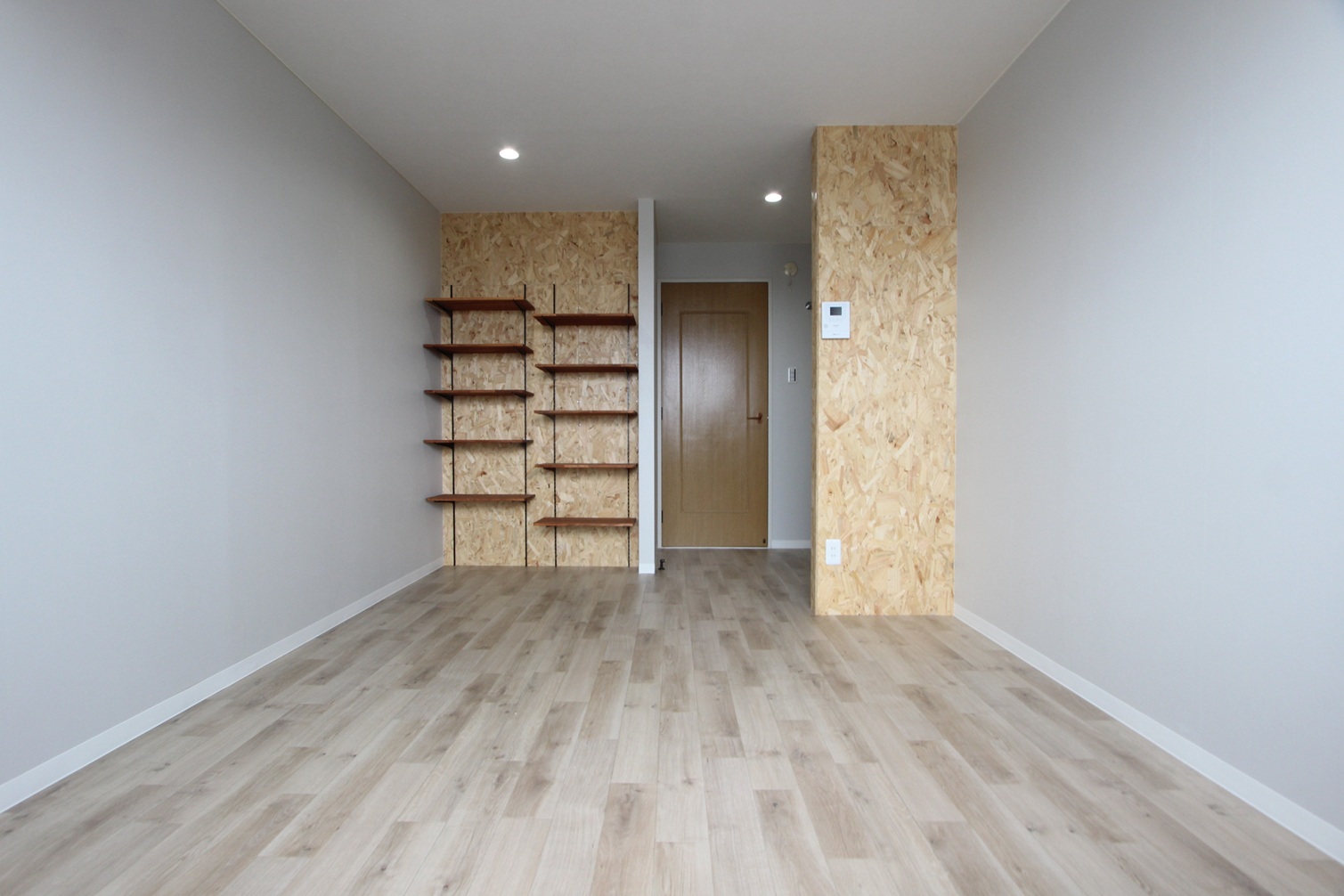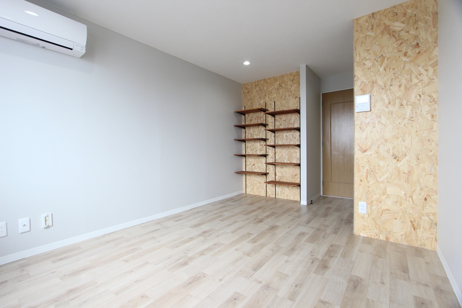 白を基調としたデザインにあしらったOSB合板は圧倒的な存在感を誇ります。